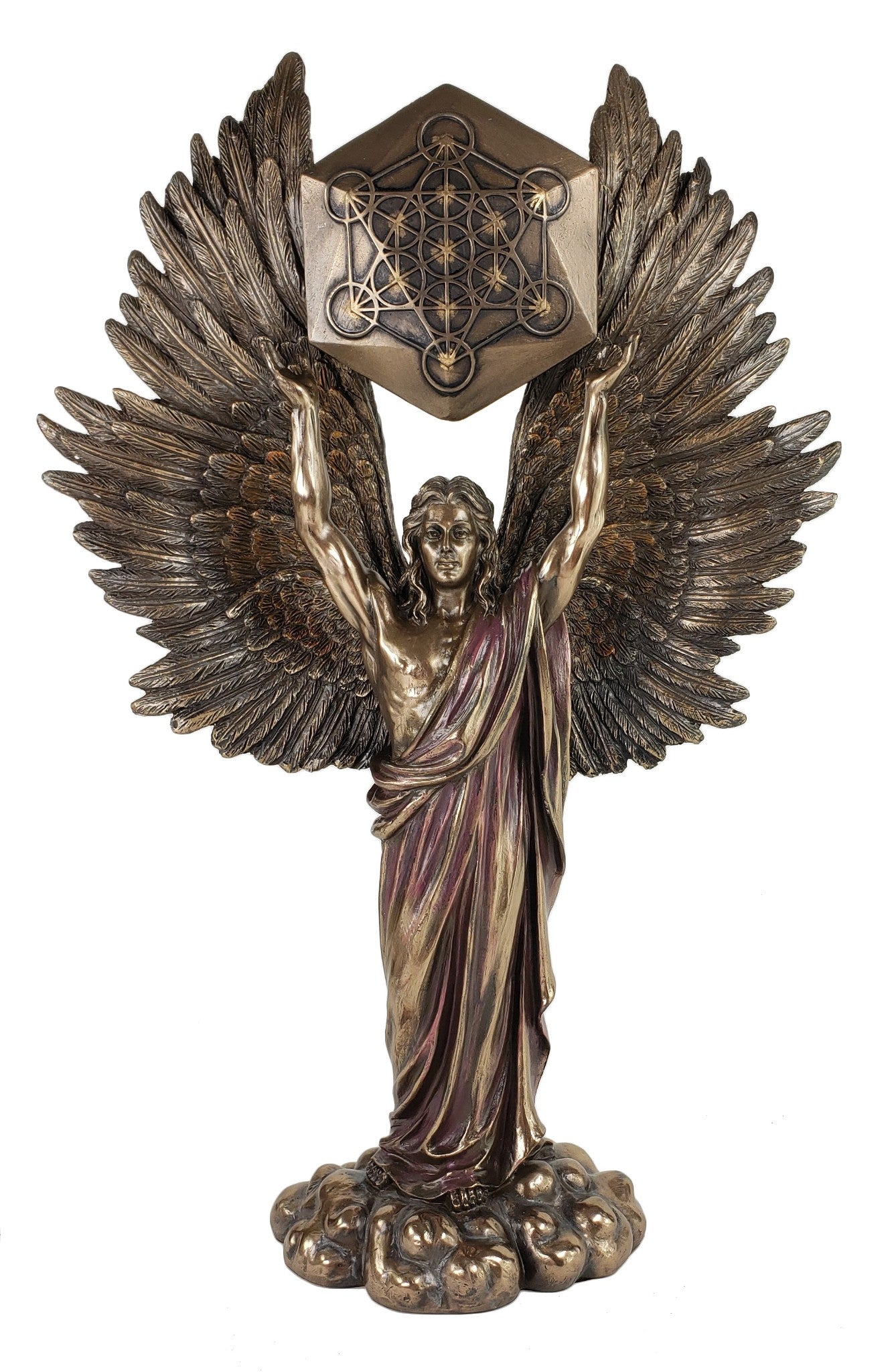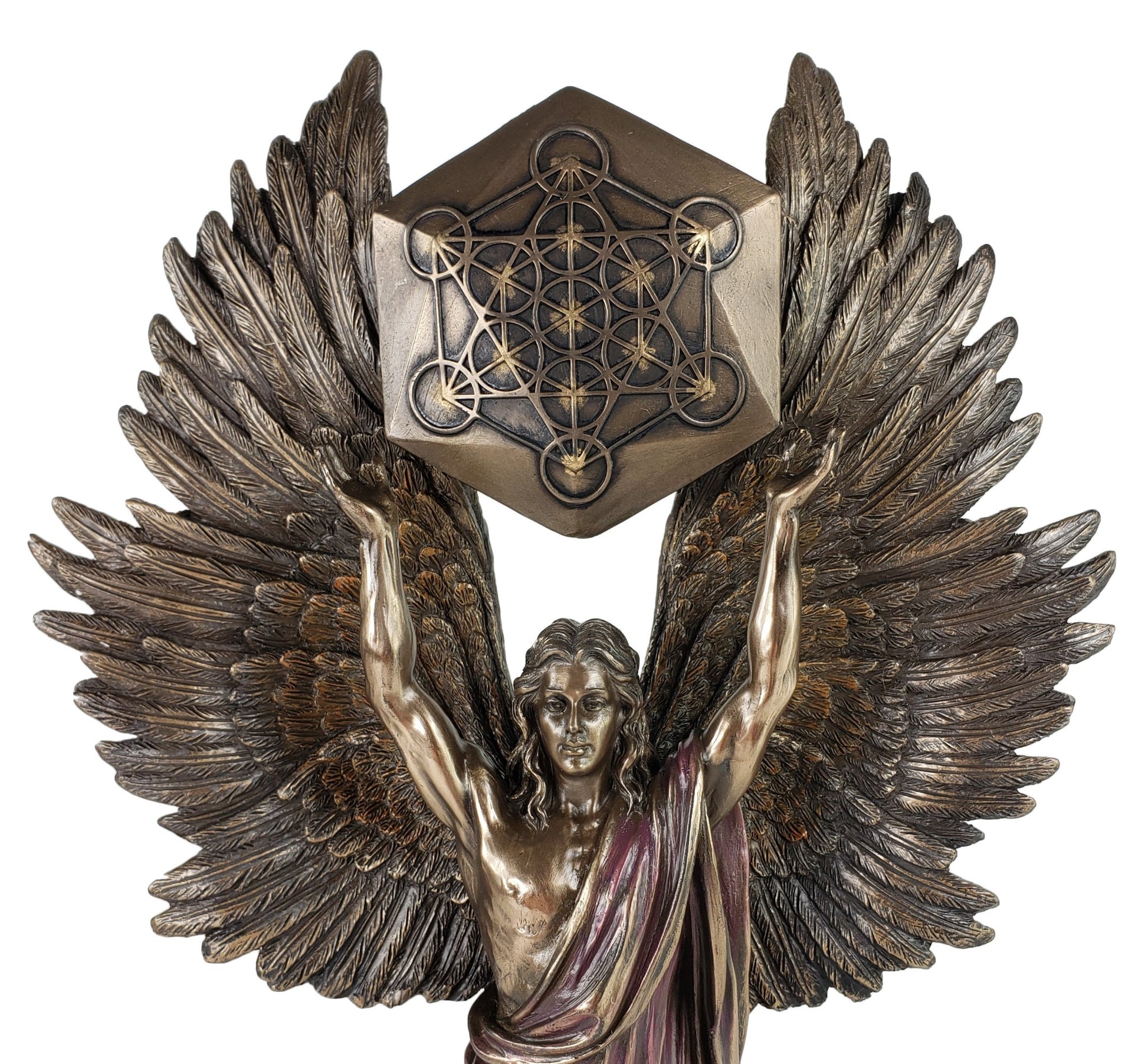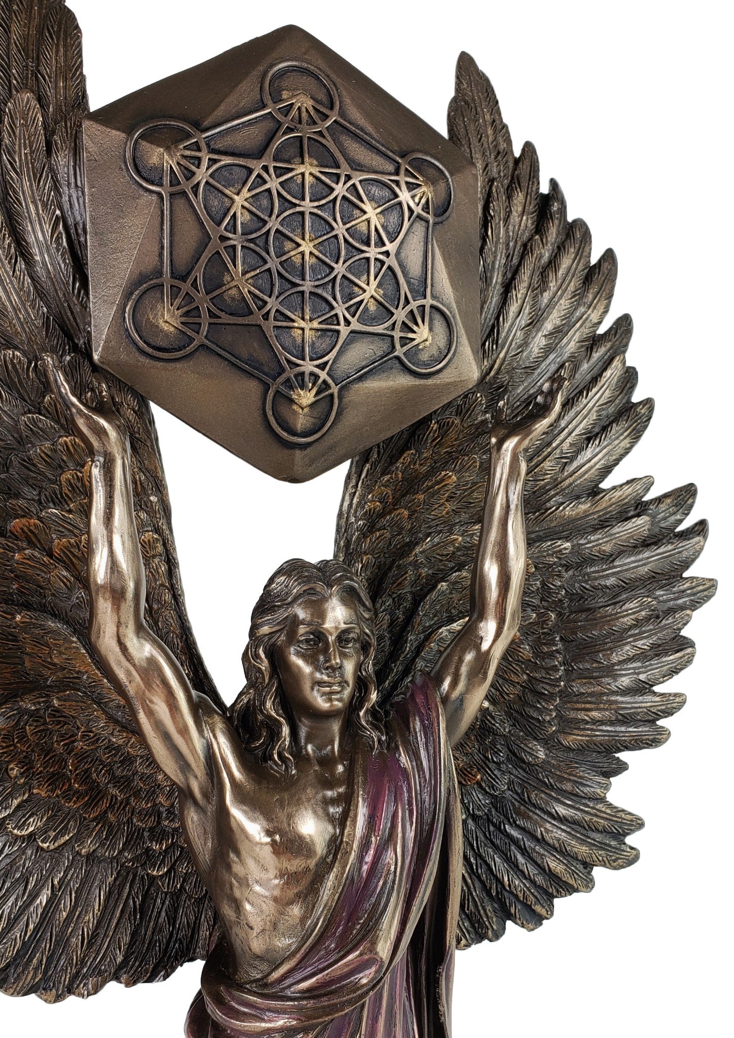 13 1/2" Metatron w Sacred Geometry Cube ARCHANGEL Bronze Color Angel Statue