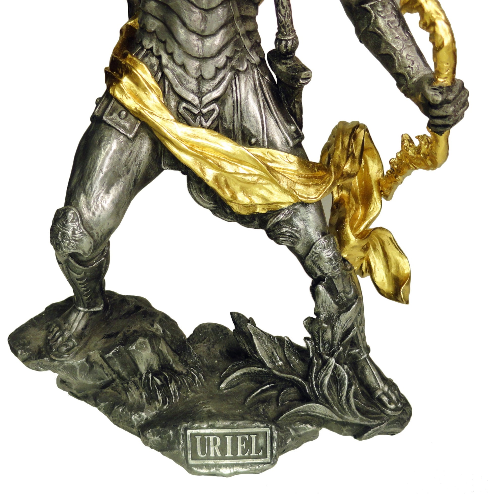 This listing is for a brand new statue of Archangel Uriel with Bow. Expertly cast in resin featuring a rich antique pewter & Gold finish. The superb detailing and hand painted accents really bring this statue to life. Great addition to anyone's décor!