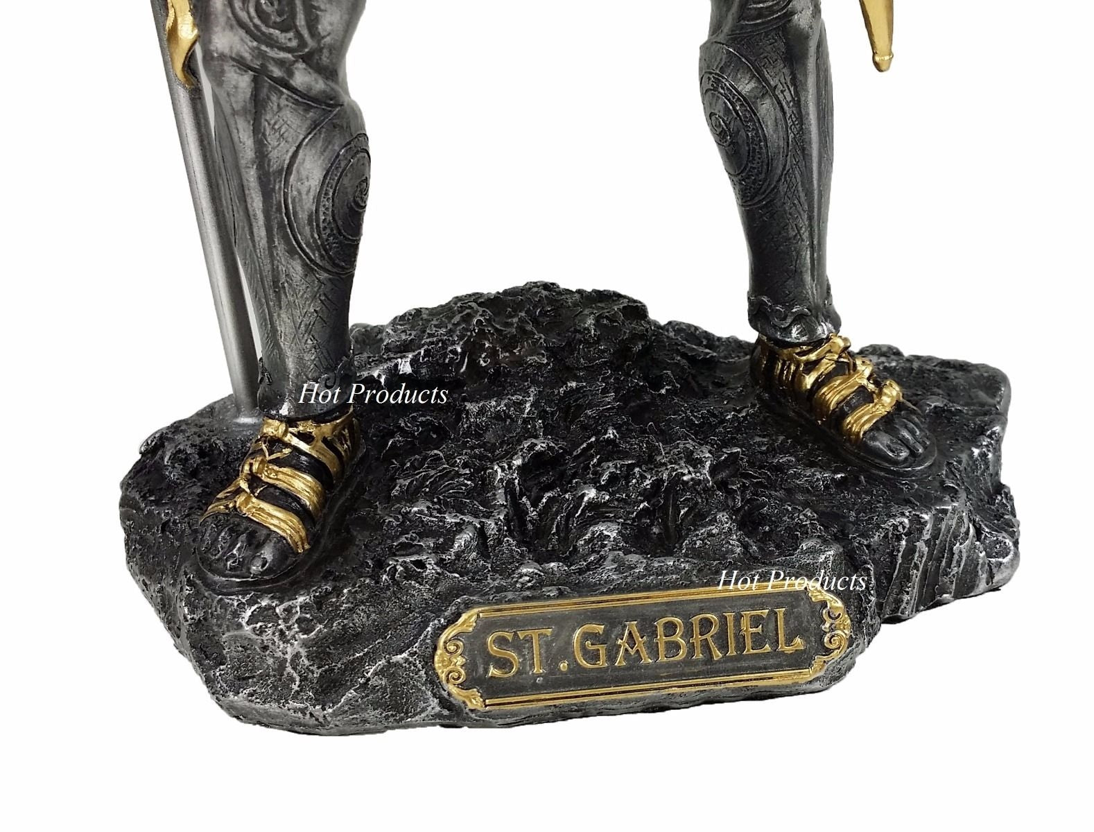 This listing is for a brand new St Gabriel statue a rich antique pewter & gold finish. The superb detailing and hand painted accents really bring these statues to life. Statue is solid resin and hand painted with a fully felted bottom. Great addition to anyone's decor!