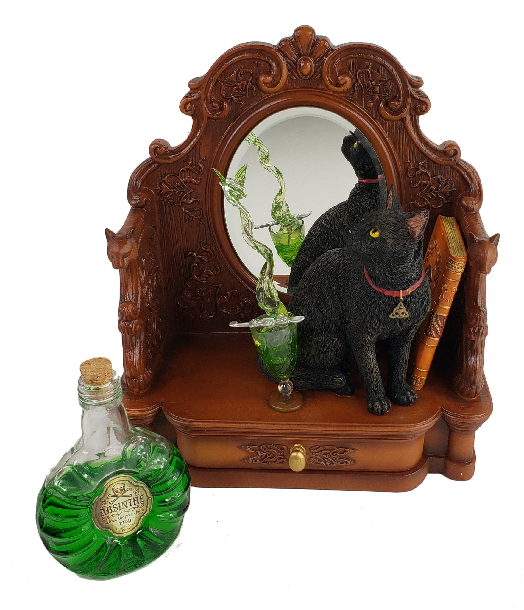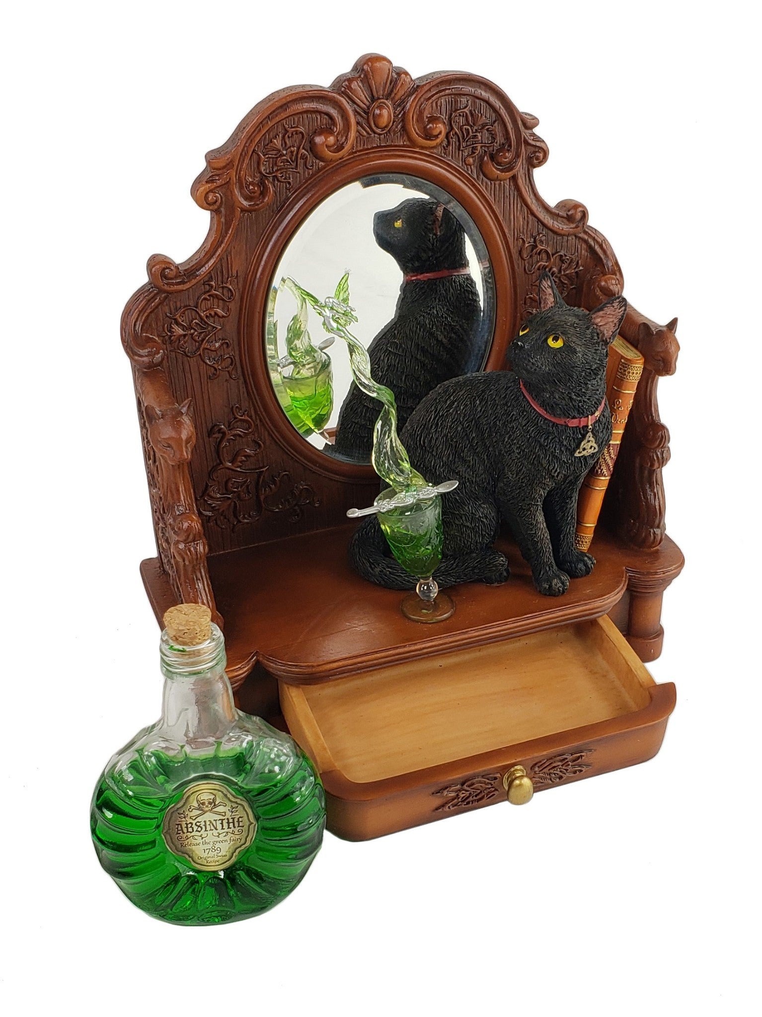 8 1/4" Lisa Parker Absinth Black Cat on Dressing Table Mirror with Drawer Statue
