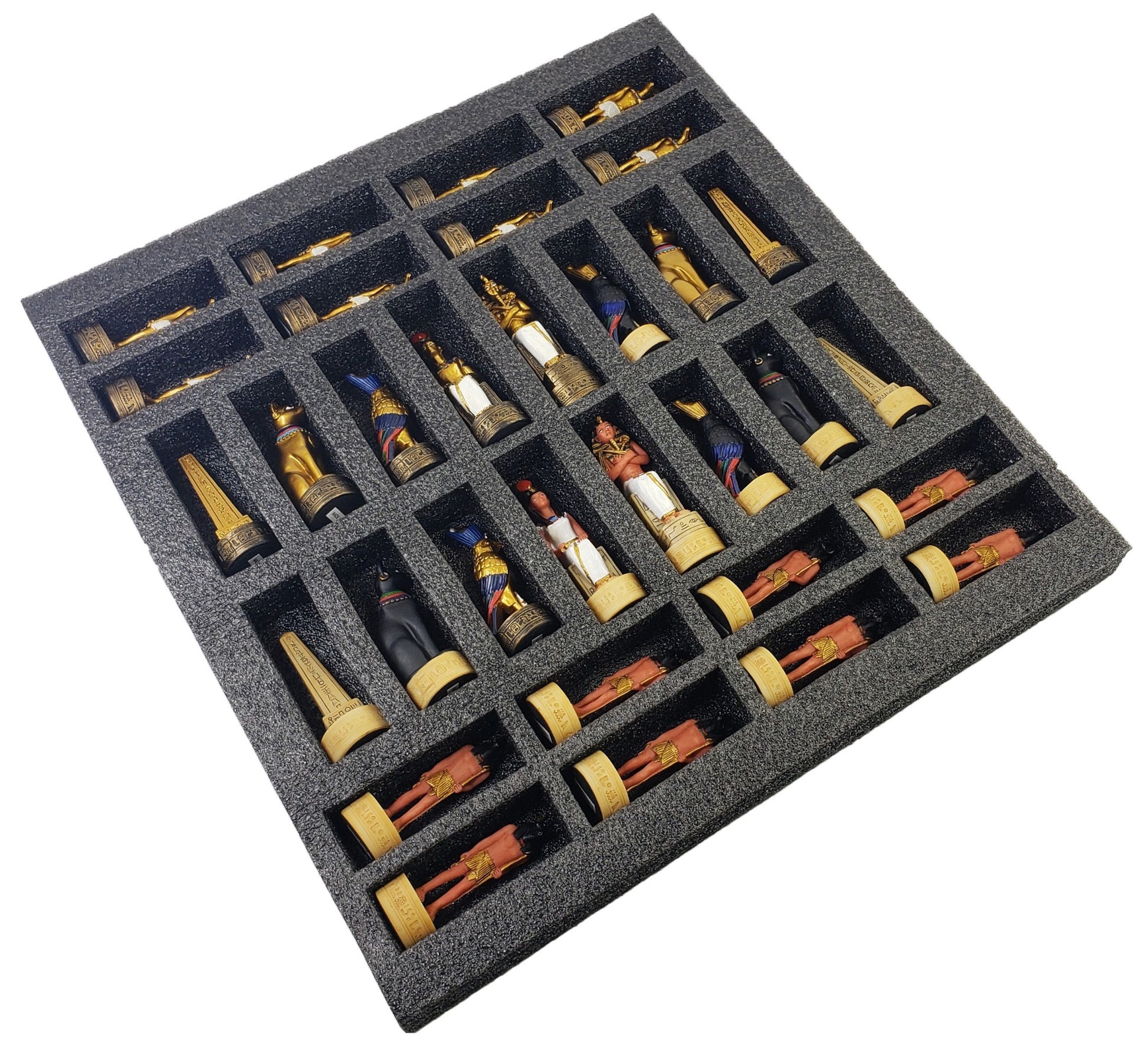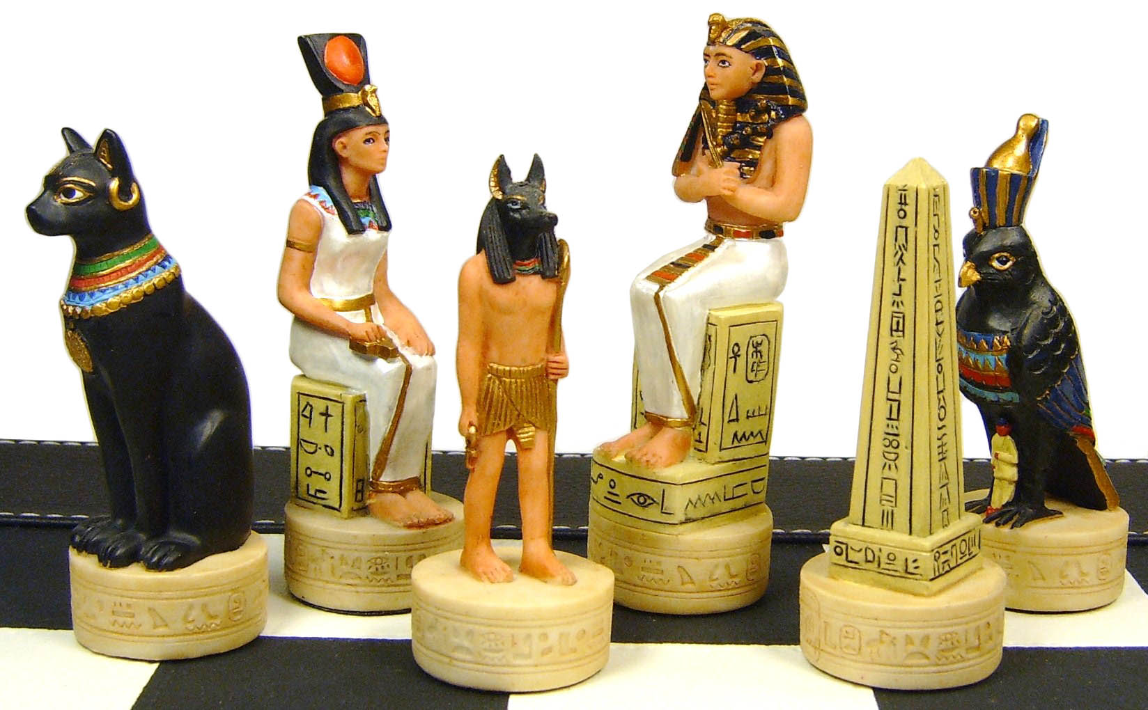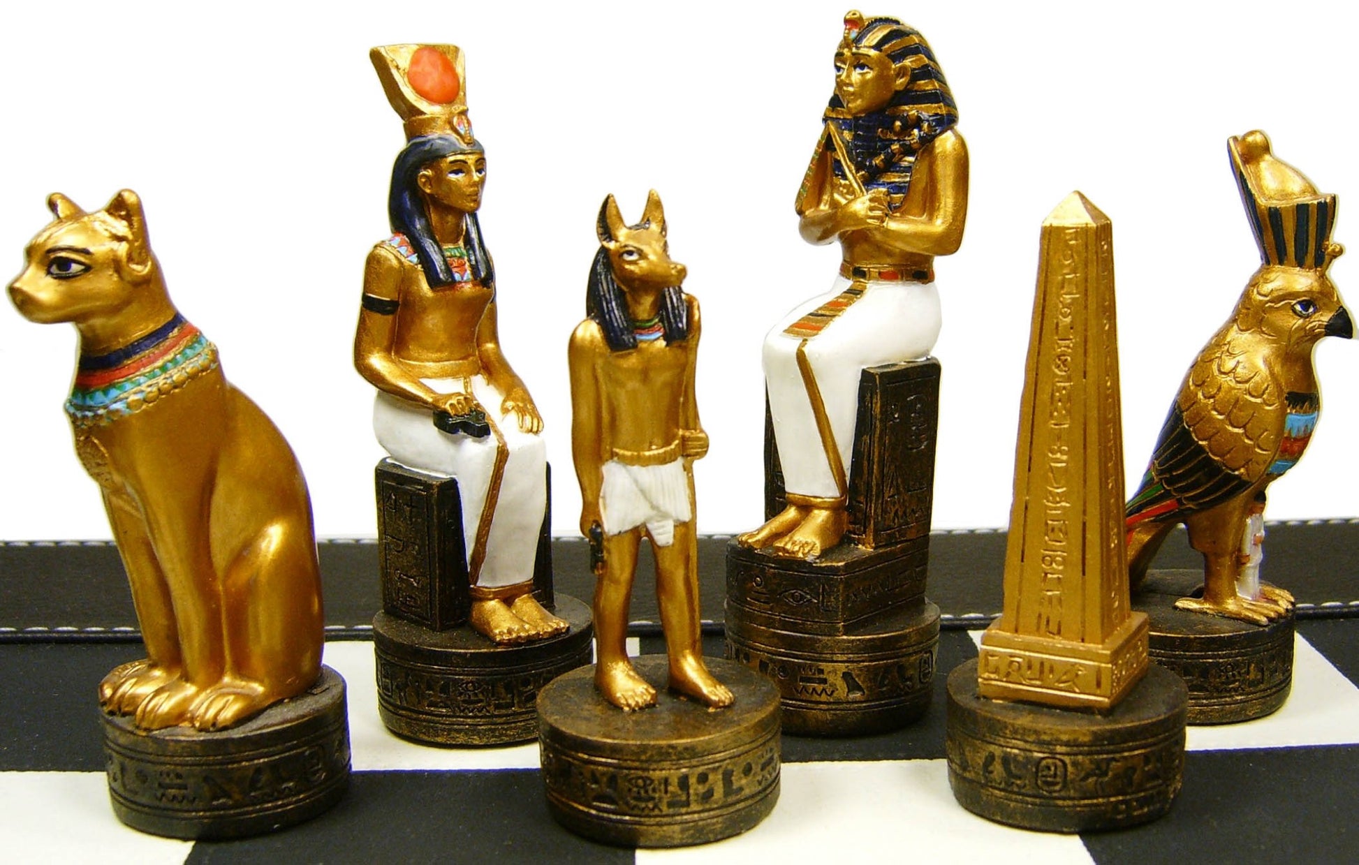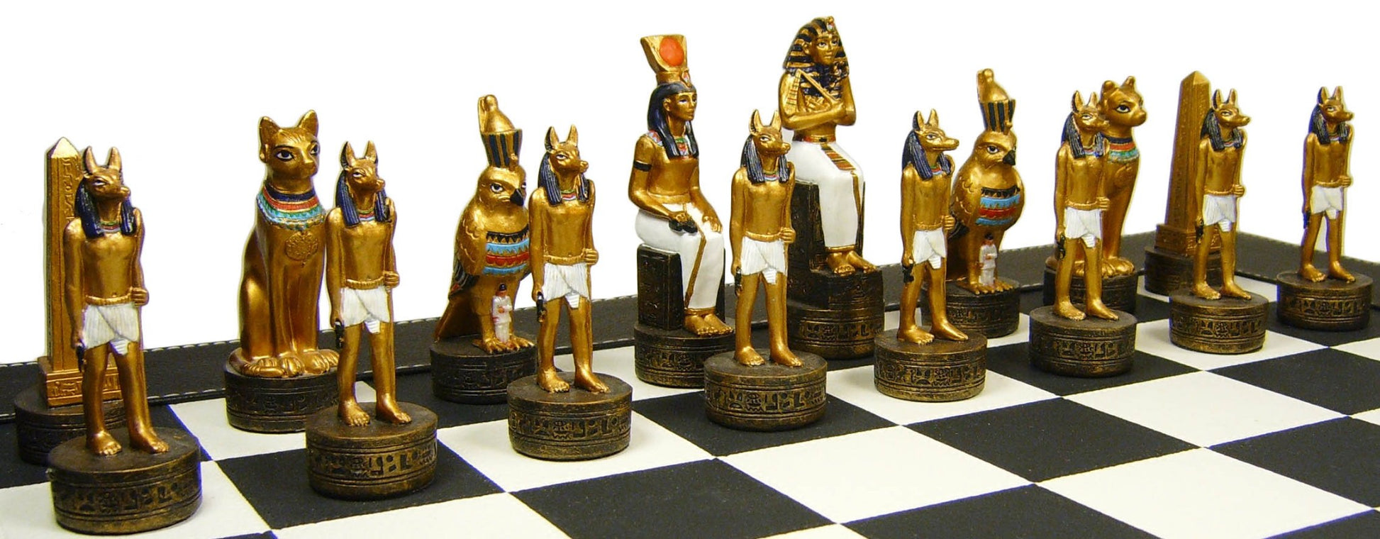 Egyptian Anubis Gold & Buff Chess Set with 18" Black & White Faux Leather Board
