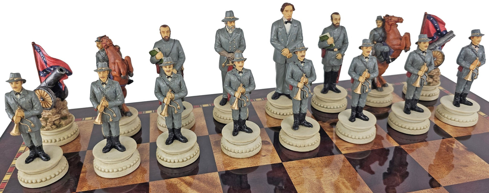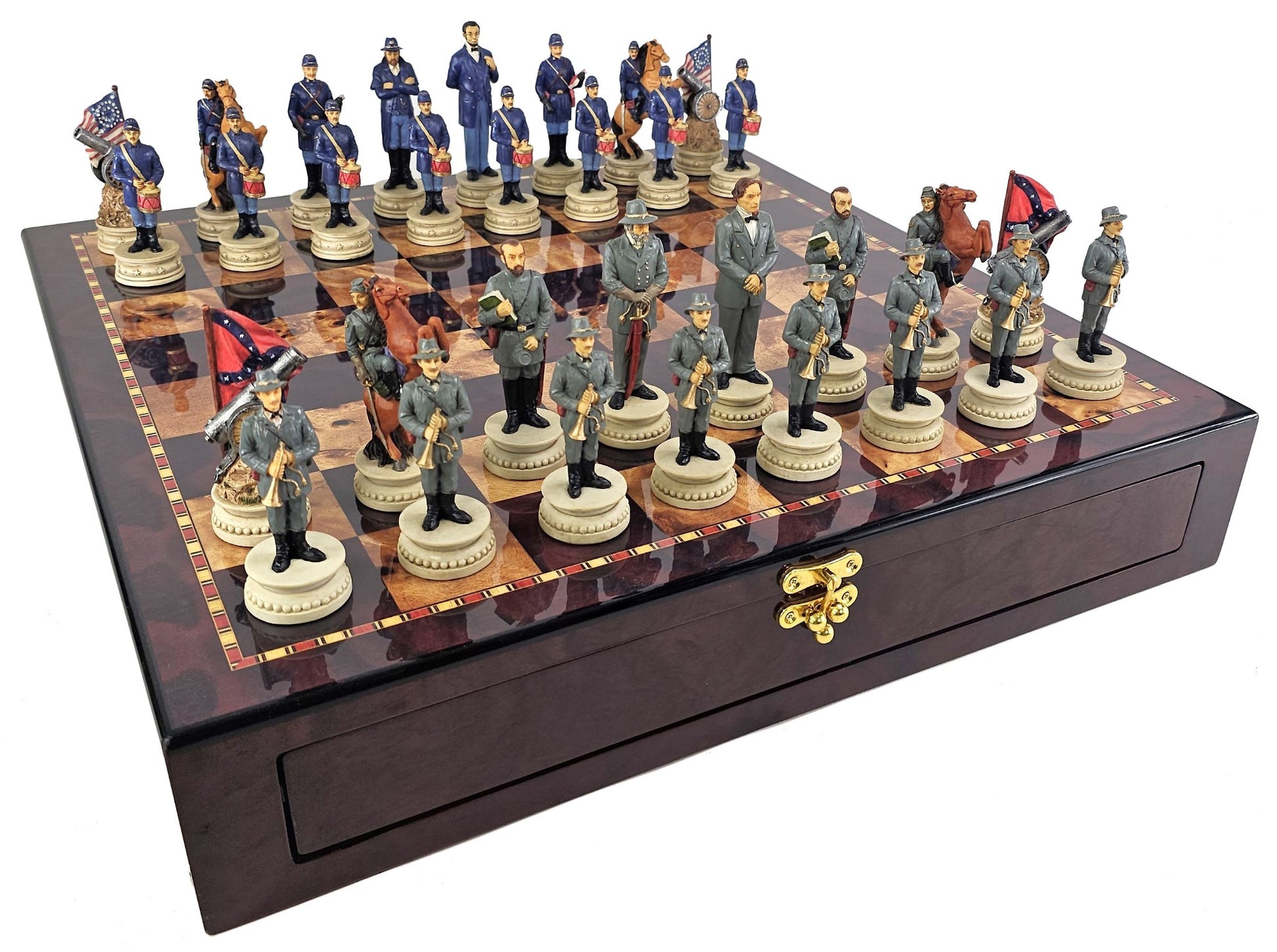 LARGE 4 1/2" KING US Civil War Generals Chess Set 20" Cherry Color Storage Board