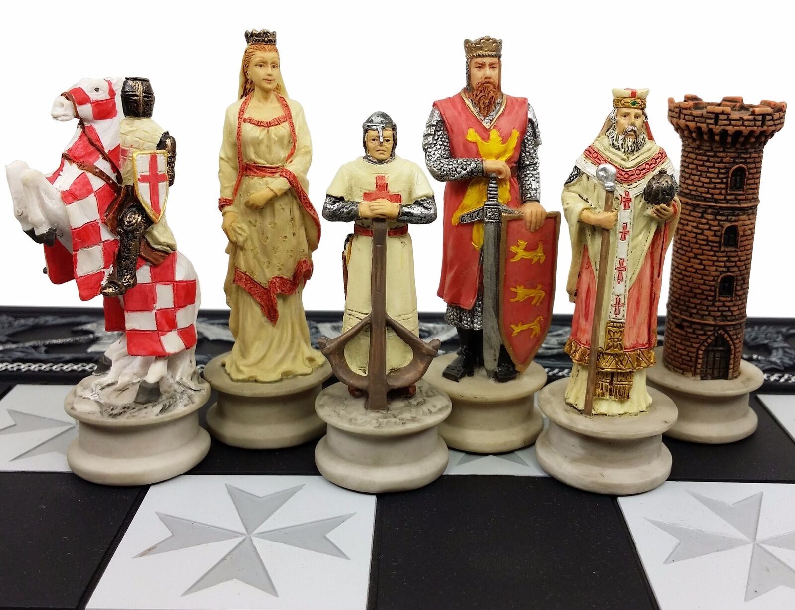 Medieval Times King Richard Painted Christian Knight Chess Set 17 Maltese Board