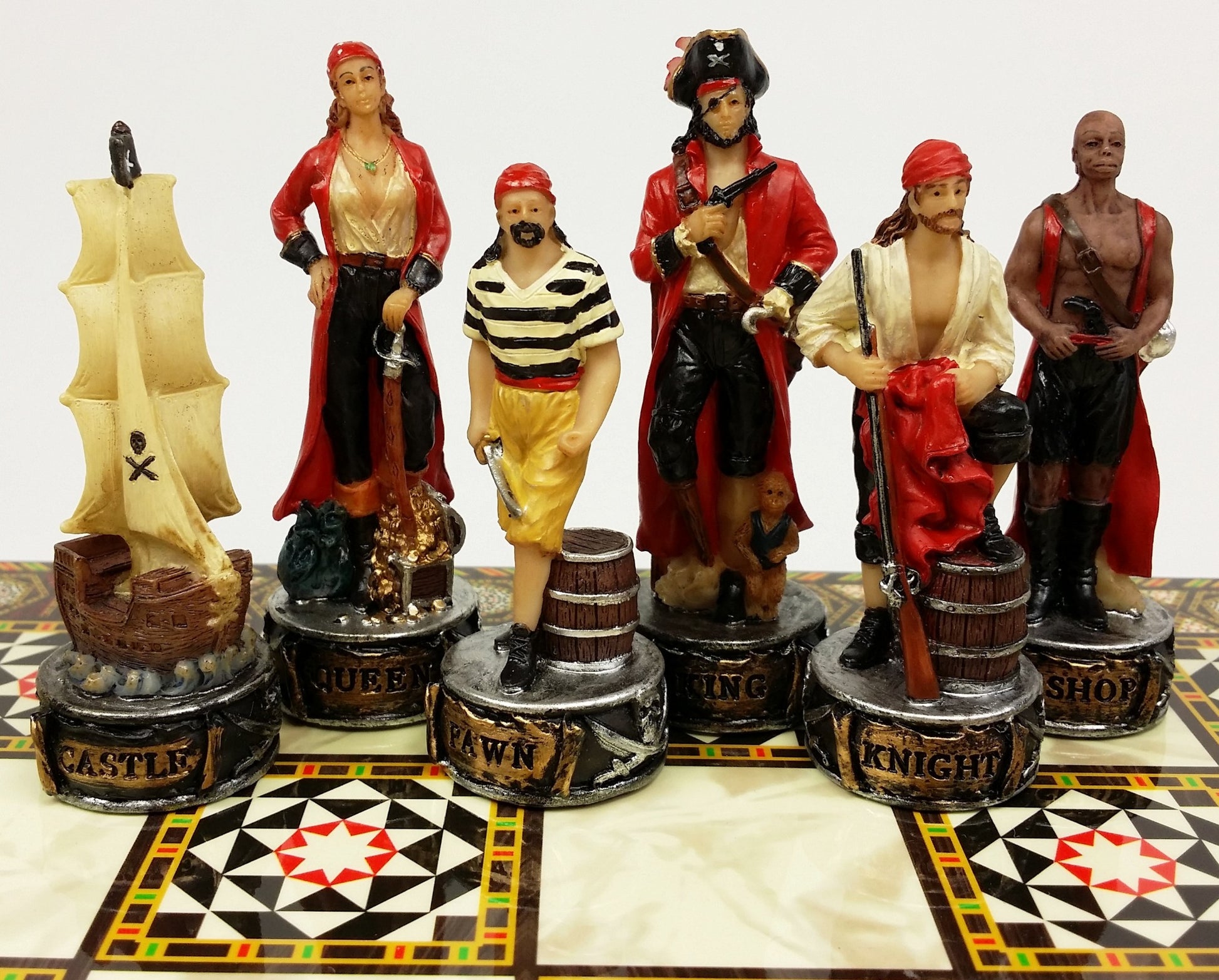 Pirates vs Royal Navy Pirate Chess Set W/ 14 1/2" Mosaic Color Board