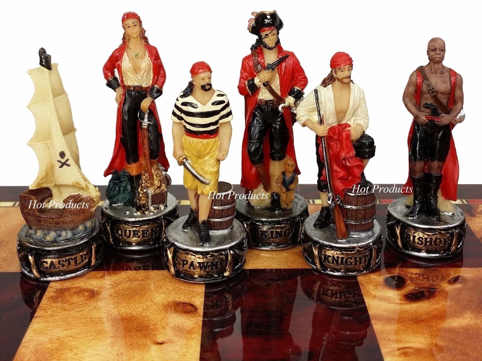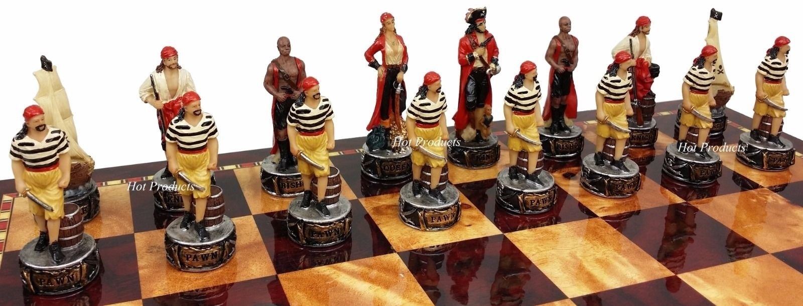 Pirates Vs Royal Navy Pirate Chess Set W Gloss Cherry Color Storage Board