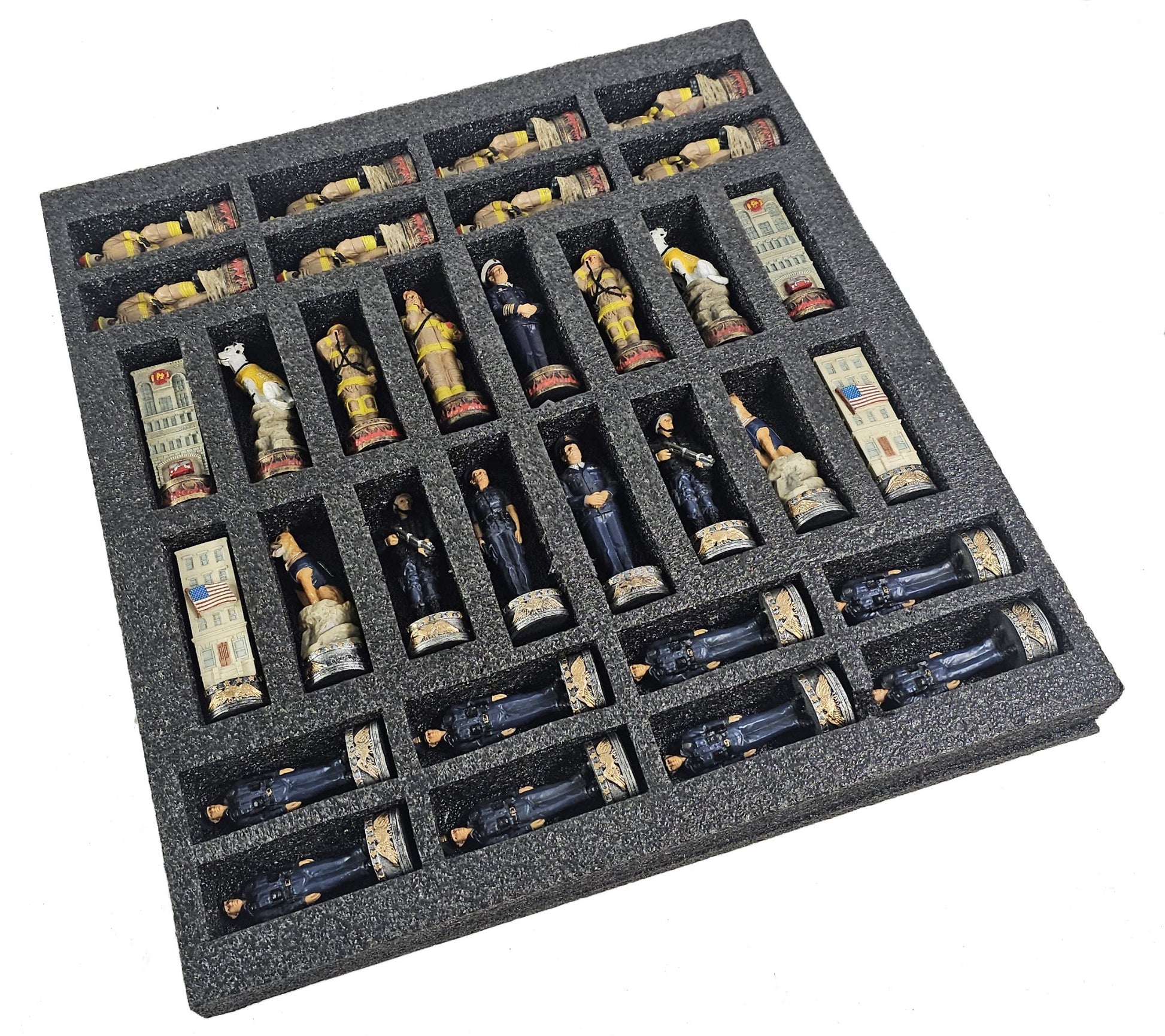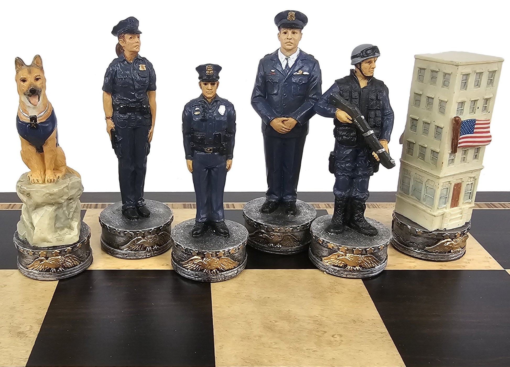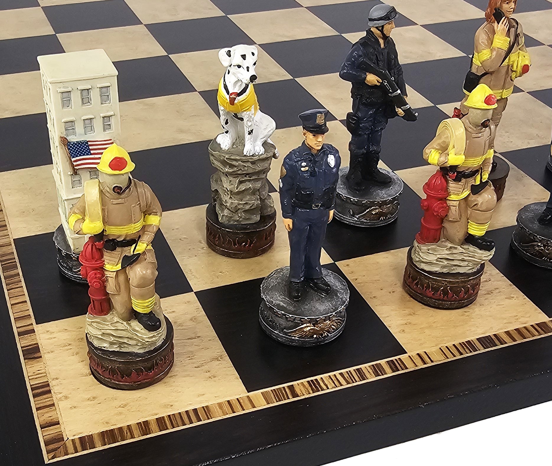 Police vs Firefighter First Responders Chess Set Ebony & Maple Wood Board