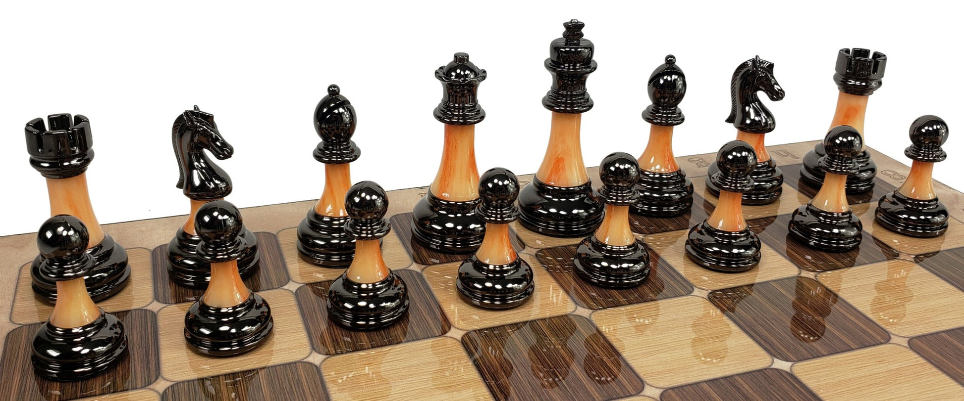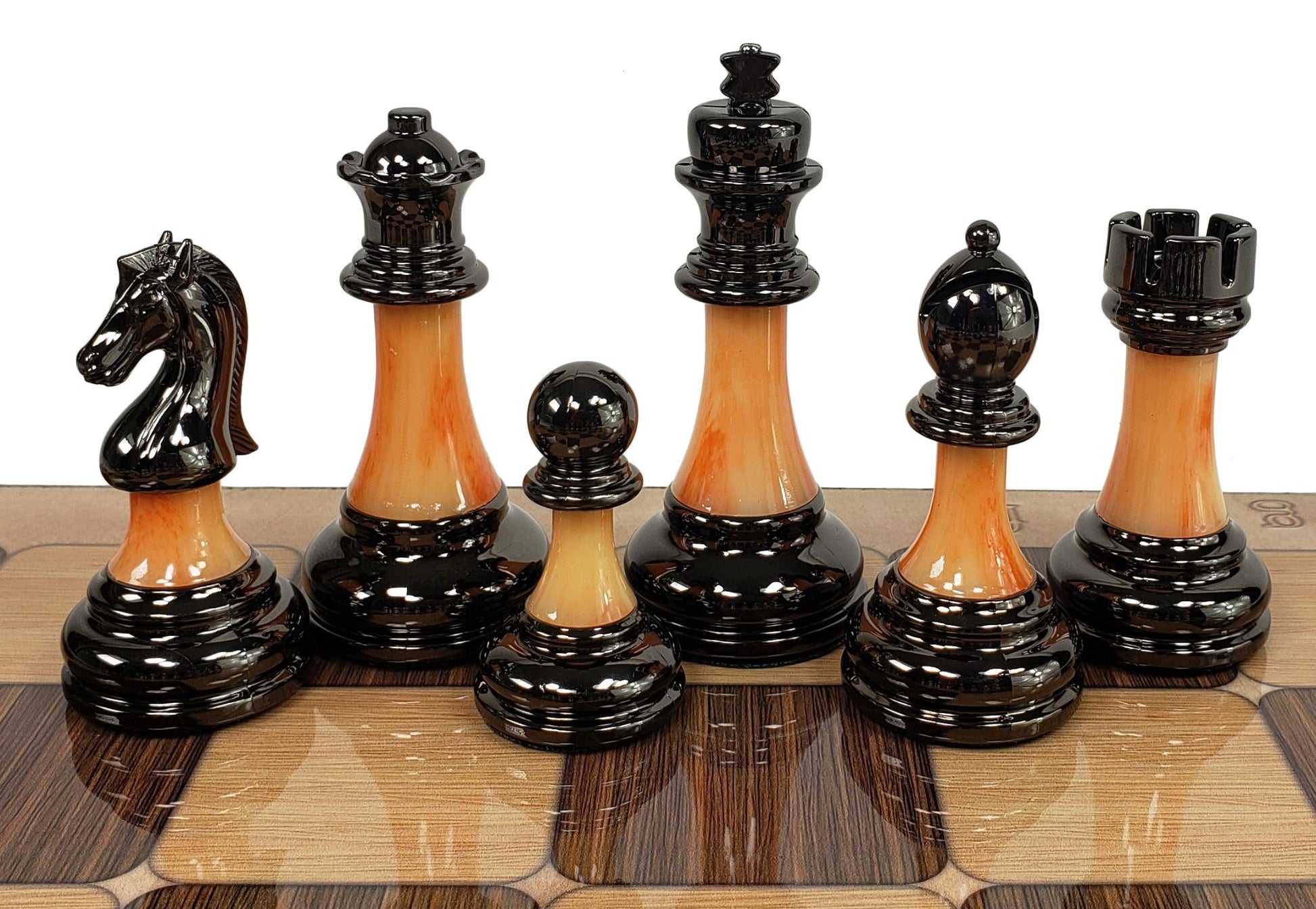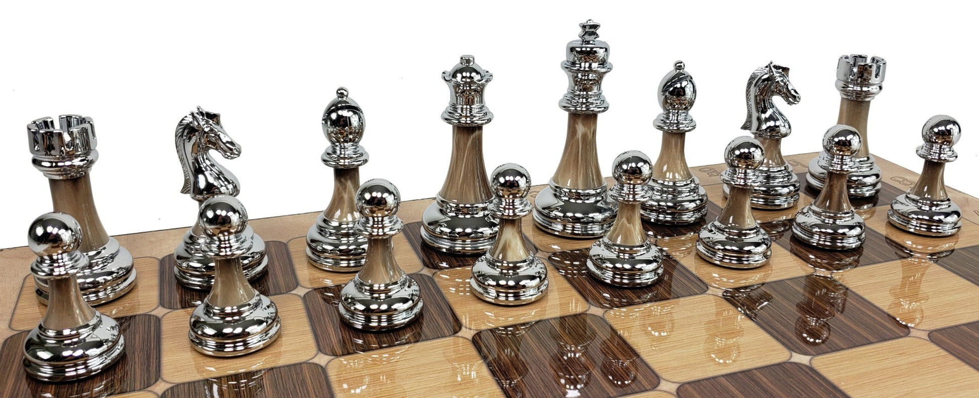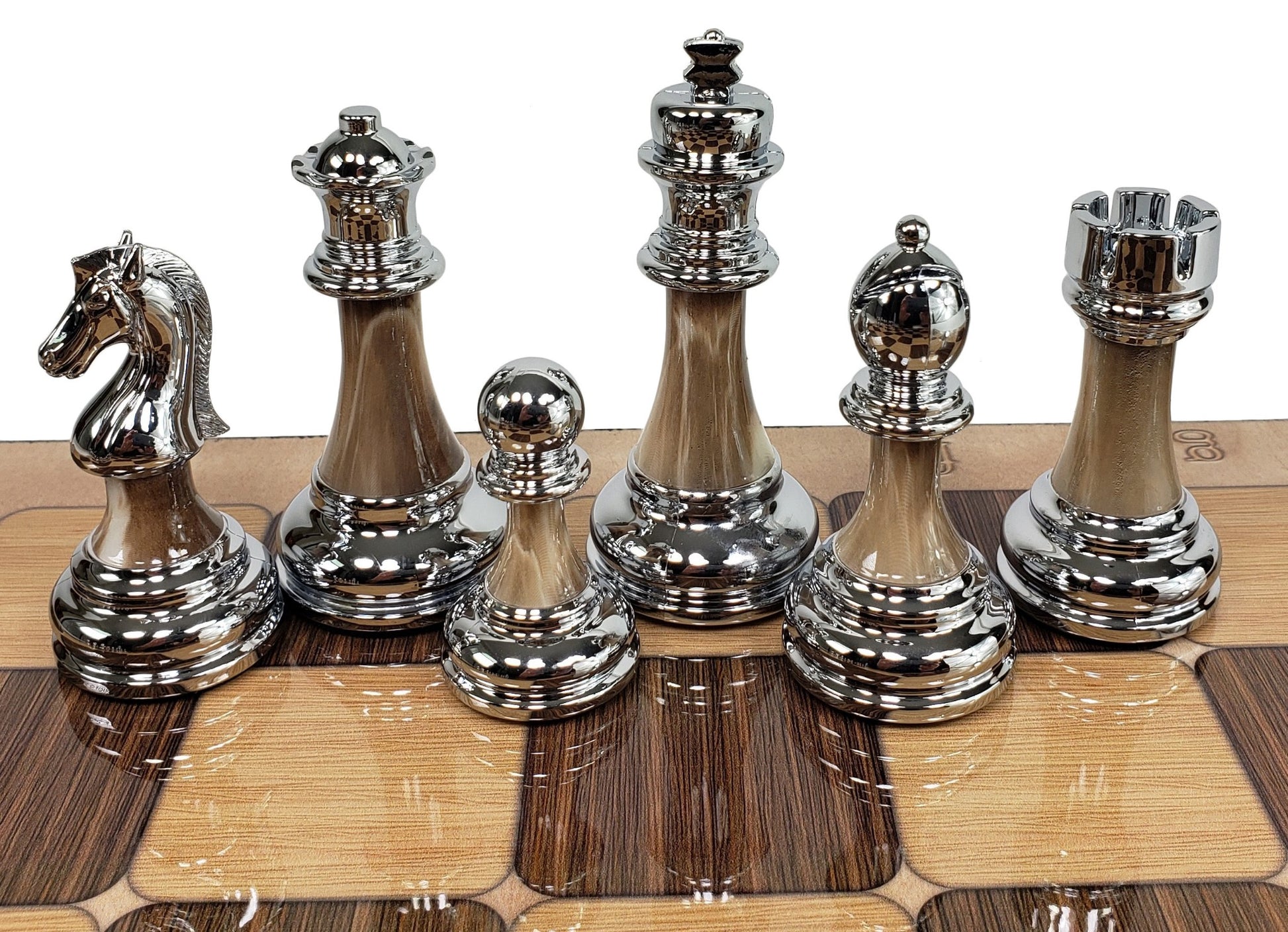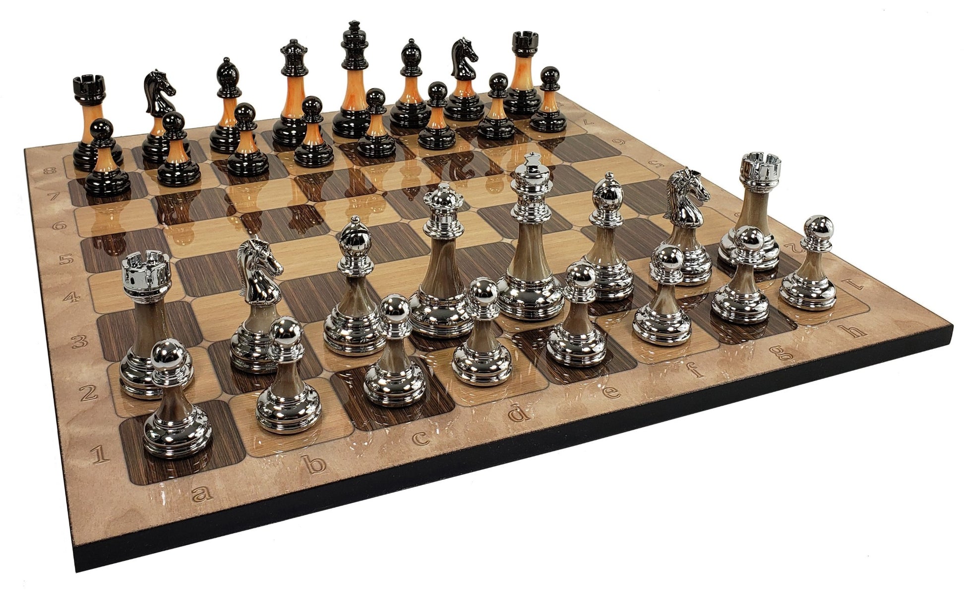 Staunton Chrome & Black Pro Plastic Chess Men Set W 17" Rustic Color Board