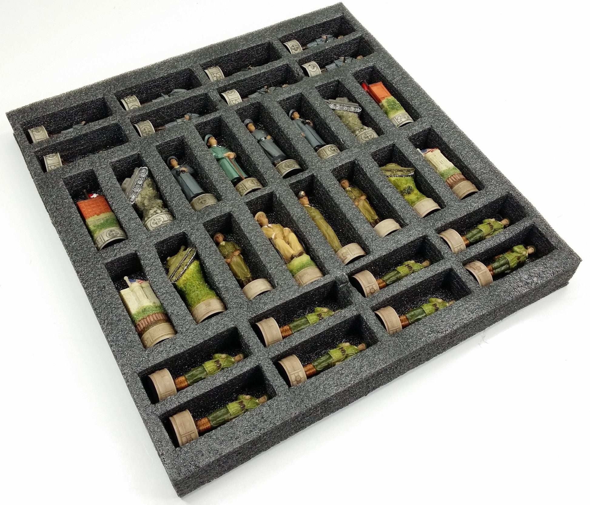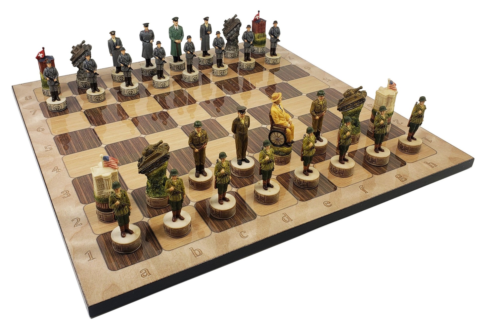 WW2 US vs Germany Chess Set W/ 17" Rustic Maple & Ebony Color Board
