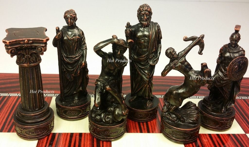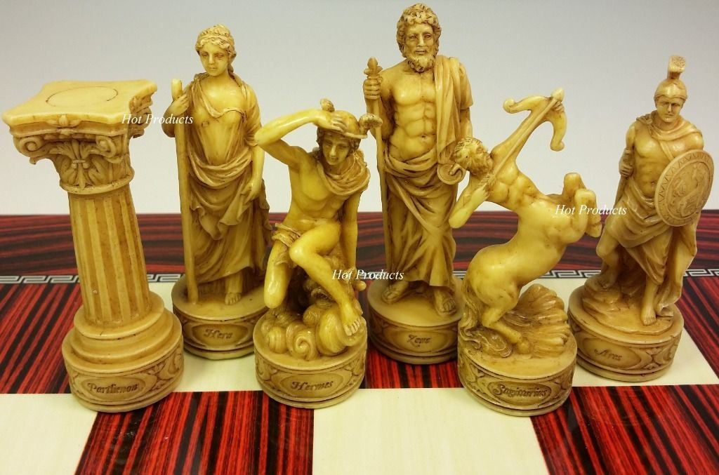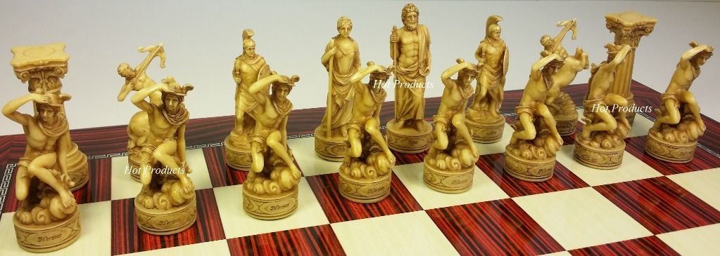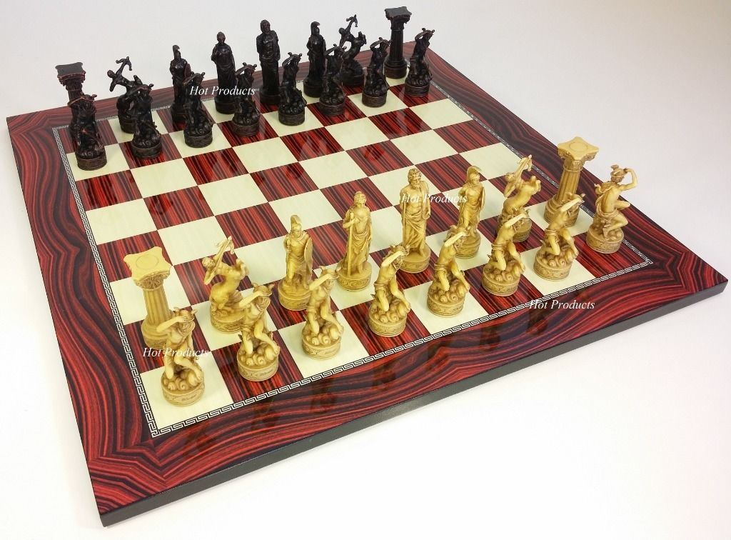 Zeus Greek Roman Mythology Gods Chess Set W/ 17" Cherry Color Board